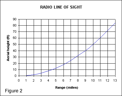 One of the drawbacks of VHF frequencies is the way in which they propagate through the atmosphere. They use what is known as the `space wave’ which means they travel in almost perfectly straight lines and do not follow the curve of the earth. Figure 1 shows the limitations.
